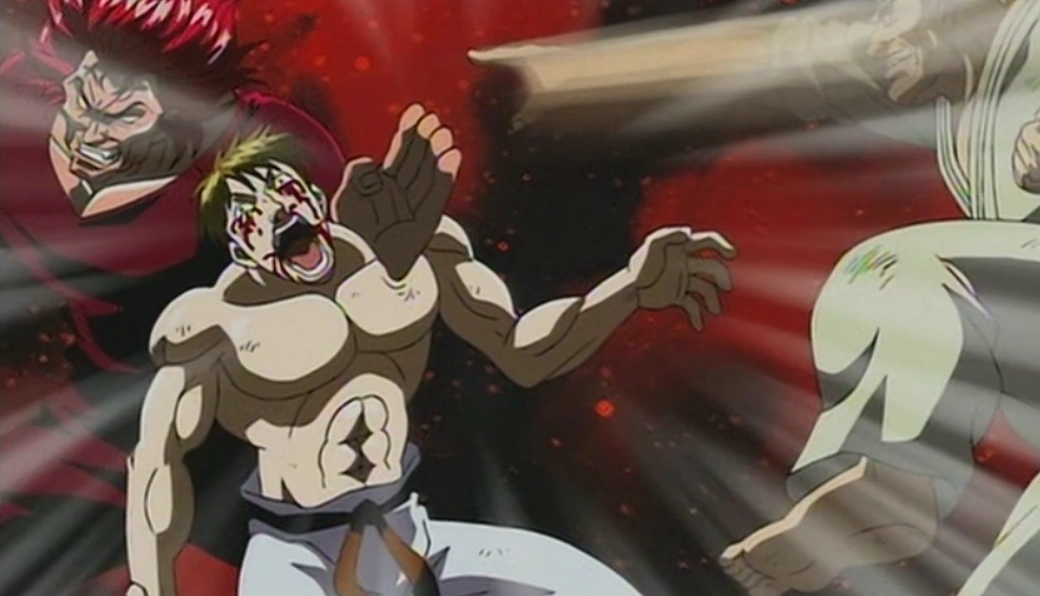 - In the English dub of the Maximum Tournament saga, it erroneously implied via Dr. John that Yuujirou also took the X-4 concoction that gave Jack Hanma his incredible strength.